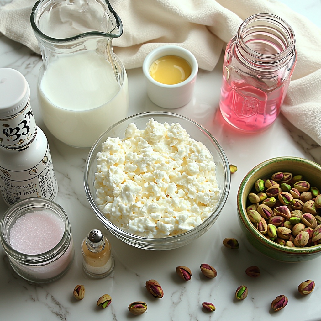 The beauty of this Rose Pistachio No-Churn Ice Cream Recipe lies in its simplicity—each ingredient is carefully selected to build layers of flavor, texture, and aroma without fuss. From the tangy richness of cream cheese to the fragrant hint of rose water, every addition plays a crucial role in making this ice cream truly special.