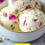 Indulge in the delicate and creamy Rose Pistachio Ice Cream, a no-churn dessert that blends fragrant rose water with crunchy pistachios for a luxurious treat. This easy-to-make ice cream requires no special equipment and delivers a rich, velvety texture perfect for any occasion.