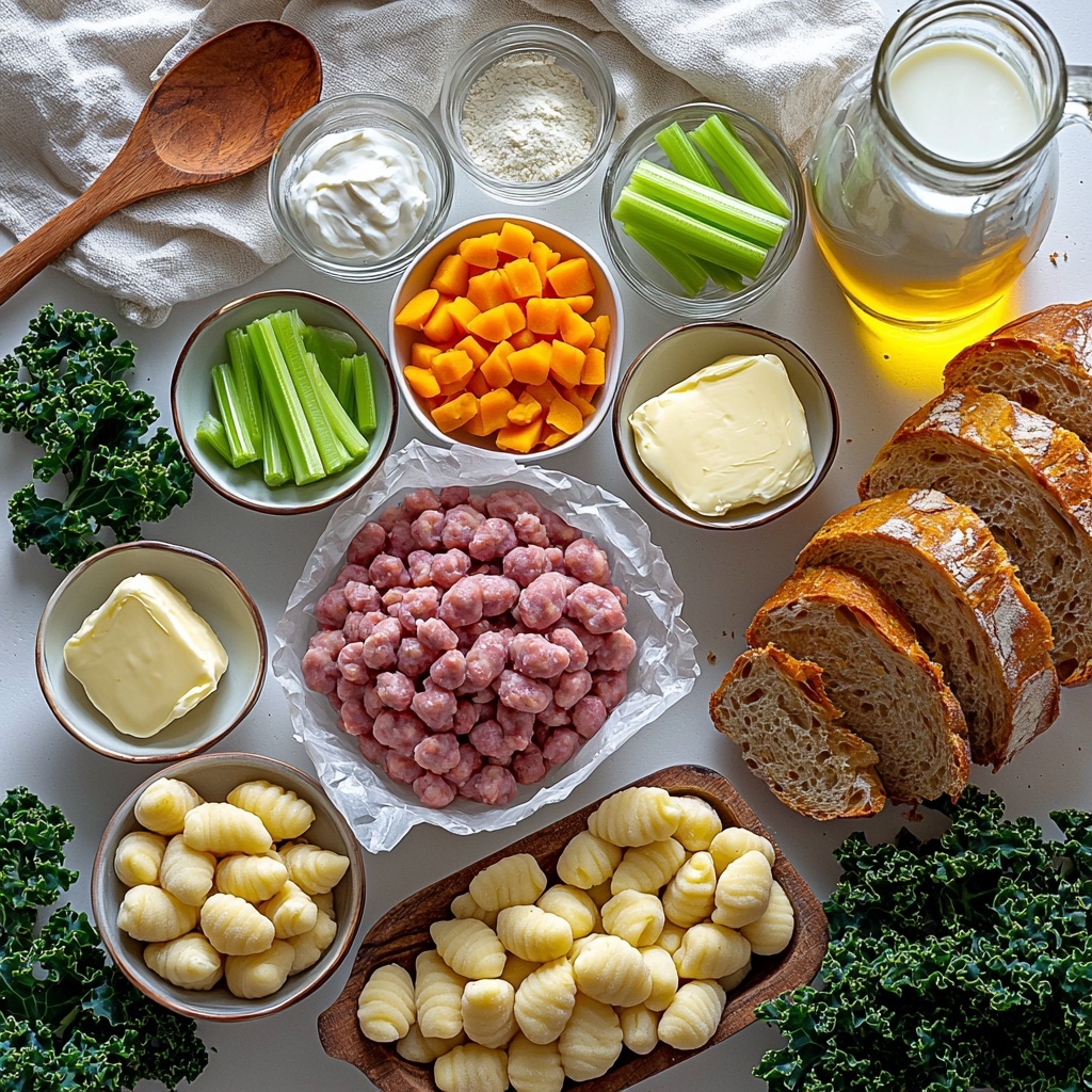 The beauty of this soup lies in its simple but carefully chosen ingredients, each one playing an essential role in building layers of flavor, texture, and color. From the browned sausage that adds depth and heartiness to the silky gnocchi that makes every spoonful irresistible, you’ll see just how these basics come together magically.