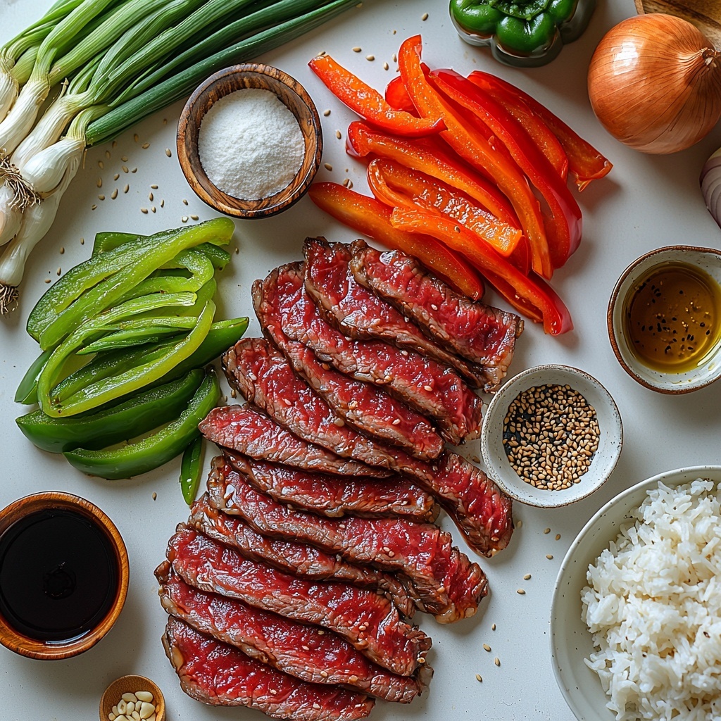 - 1 lb beef steak (sirloin or flank), thinly sliced against the grain: Choosing the right cut ensures tenderness while slicing against the grain makes every bite melt-in-your-mouth.