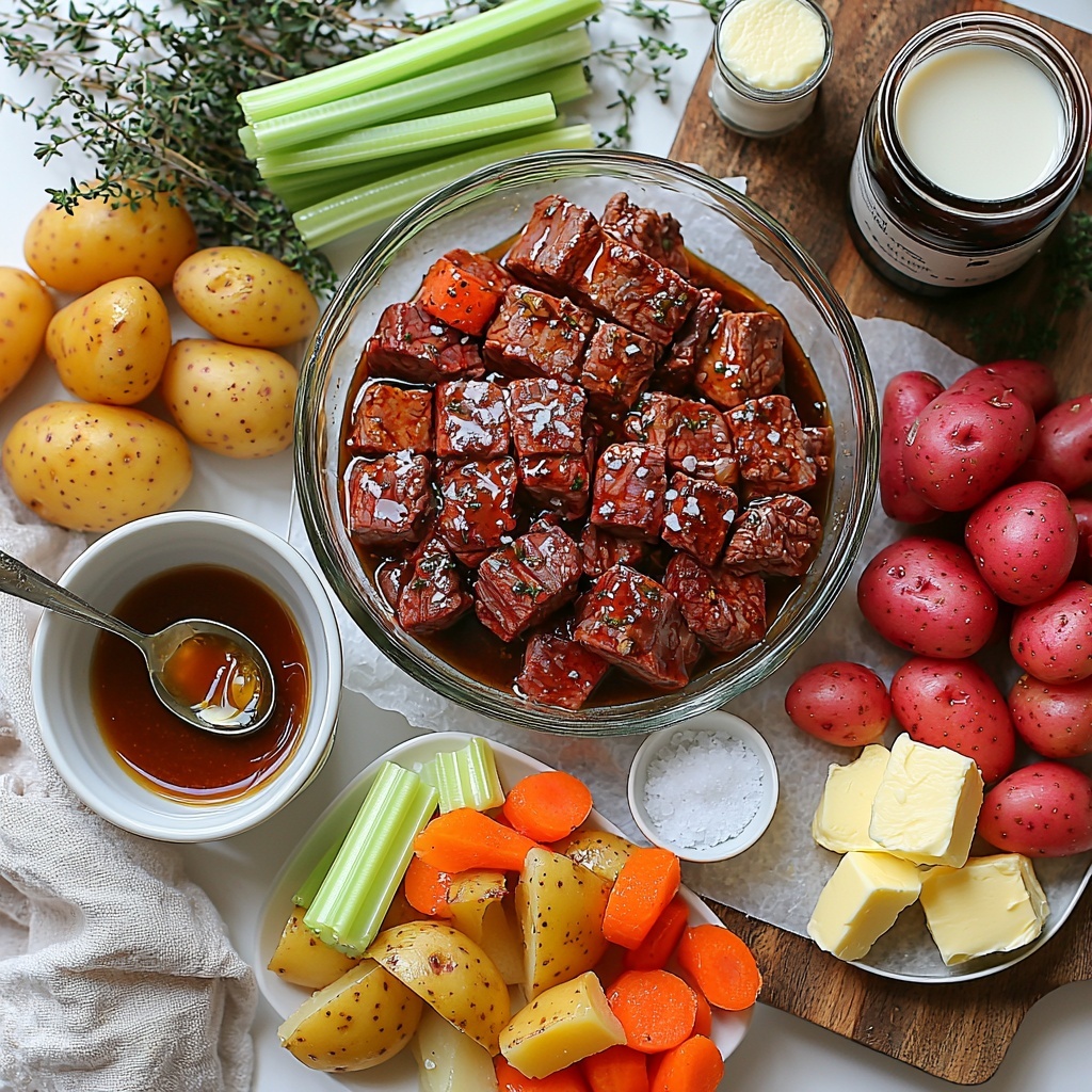All the magic in this Slow Cooked Beef and Dumplings Recipe comes from straightforward, pantry-friendly ingredients that work together to create extraordinary depth and texture. Each one plays a vital role, from building a luscious base to delivering just the right balance of silkiness and heartiness.