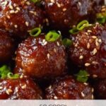 7. Serve: Sprinkle sliced green onions and sesame seeds over the meatballs. Serve warm with toothpicks as an appetizer or spoon over rice or noodles as a main dish.