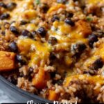A vibrant and hearty Southwest Black Bean Skillet Recipe combining rice, sweet potatoes, black beans, and green chiles in a flavorful blend of chili powder and salsa. This one-pan meal is topped with melted cheddar cheese, fresh green onions, lime juice, and cilantro for a deliciously comforting and easy dinner perfect for busy weeknights.