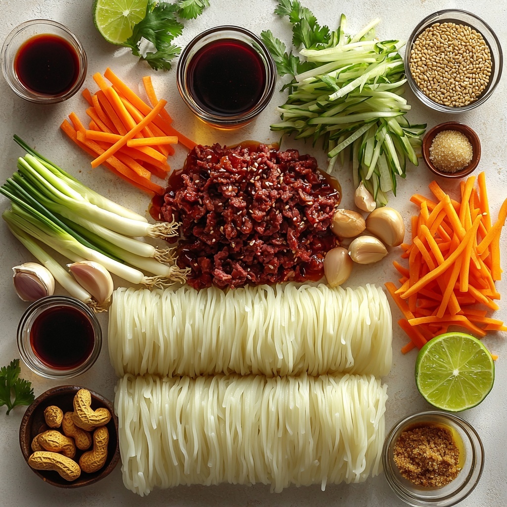 Start by preparing the wide flat rice noodles according to the package instructions. Once cooked, drain them and rinse under cold water to stop the cooking process and remove excess starch. Toss the noodles lightly with a teaspoon of sesame oil to prevent them from sticking together. You can set them aside now, ready to serve cold, or keep them separate for warming through with the beef later—whichever you prefer!
