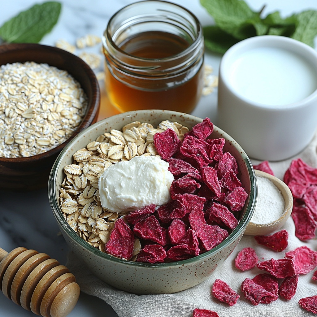 Next, stir in the softened cream cheese, crushed freeze-dried strawberries, honey or maple syrup, and vanilla extract. These ingredients bring moisture, sweetness, and that unmistakable cheesecake and strawberry duo that makes this recipe stand out.
