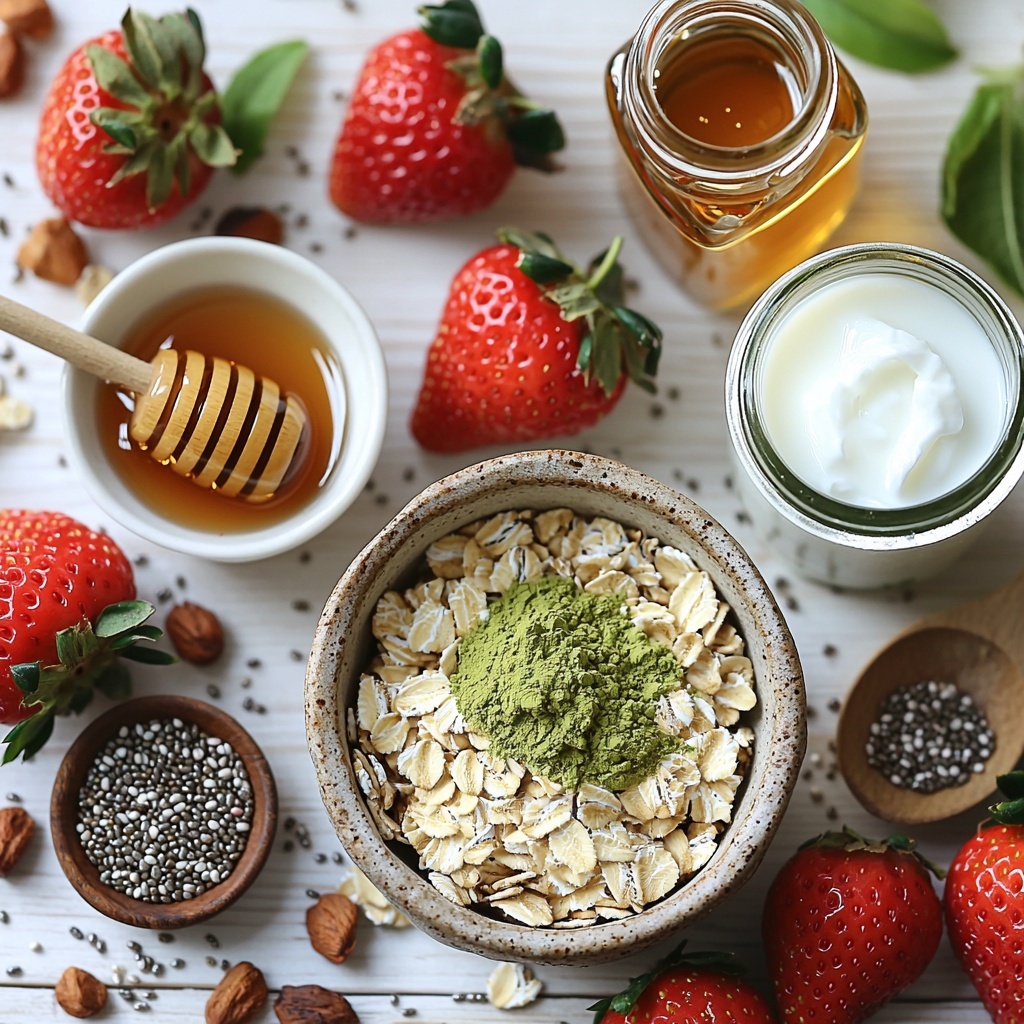 Getting the ingredients together for this recipe is incredibly straightforward, yet each component plays a crucial role in balancing flavor, texture, and color. From creamy almond milk to antioxidant-packed matcha, every item transforms simple oats into a powerhouse breakfast that keeps on impressing for five days straight.