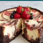 This Strawberry Swirl Chocolate Cheesecake combines a rich chocolate cookie crust with a creamy chocolate-infused cheesecake filling, beautifully marbled with a fresh strawberry puree swirl. Baked to perfection, this decadent dessert is perfect for special occasions or indulgent treat lovers seeking a harmonious blend of chocolate and fruity flavors.