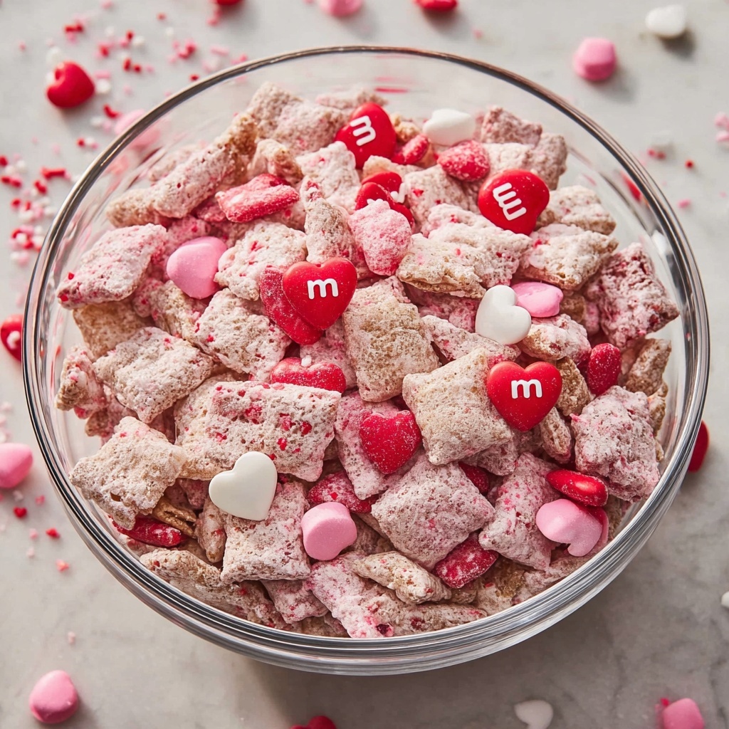 This festive Strawberry Chex Mix is a sweet, crunchy treat perfect for celebrations or snacking. The mix combines crispy rice Chex cereal coated in a strawberry-infused white chocolate, dusted with powdered sugar and freeze-dried strawberry powder for an extra fruity punch. Finished with red, pink, and white sprinkles along with Valentine-themed M&Ms, this mix is both visually appealing and delicious. Optional add-ins like mini pretzels, crushed Golden Oreos, or mini marshmallows provide customizable texture and flavor.