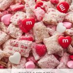 - Cool and Add Final Mix-ins: Spread the coated cereal onto a parchment-lined cookie sheet or place it back into a bowl to cool completely. Once cool, stir in ⅔ cup of Valentine-themed red or pink M&Ms, 2 tablespoons of coordinating sprinkles, and any optional add-ins like mini pretzels or crushed Golden Oreos. Serve and enjoy!