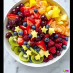 A refreshing and vibrant summer fruit salad featuring a colorful medley of fresh strawberries, grapes, banana, apple, orange, and blueberries, lightly dressed with a sweet honey and tangy lemon juice mixture. Perfect as a healthy snack or dessert, ready in just 15 minutes.