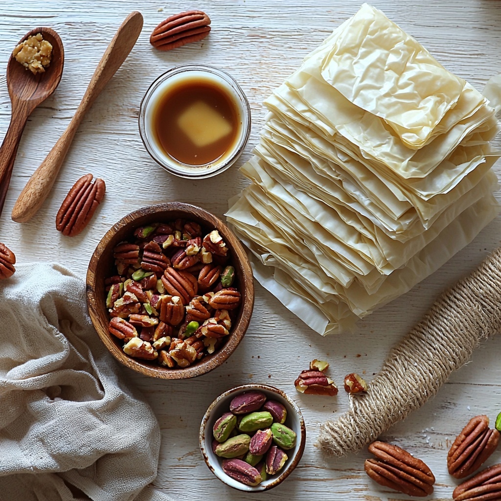 The magic of this Sweet & Crunchy Pecan Caramel Baklava Cups Recipe lies in its straightforward ingredients that each play a vital role. From the crisp, buttery phyllo sheets to the warm, spiced pecan filling and the glossy caramel topping, every component combines to create a symphony of textures and flavors that are simple yet stunning.