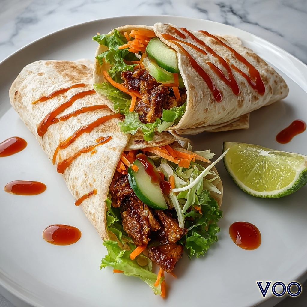 Lay a flour tortilla flat on a clean surface, then layer on shredded lettuce first — this keeps the wrap from getting soggy. Add a generous scoop of the sweet chili chicken mixture, followed by shredded carrots, diced cucumbers, and if you’re feeling adventurous, chopped fresh cilantro. Each ingredient brings something special to the table, from crunch to zest.