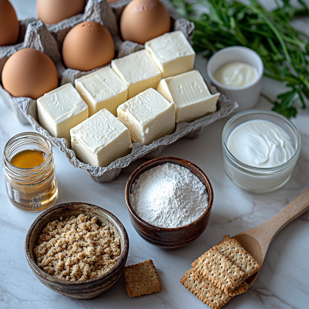 Creating this cheesecake is amazingly straightforward because each ingredient plays a vital role in achieving its signature creaminess, structure, and flavor. From the buttery crust to the luscious filling, these essentials bring the magic to life.
