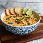 A vibrant and flavorful Thai Chicken Curry Soup featuring tender shredded chicken, aromatic Thai red curry paste, creamy coconut milk, and fresh herbs. This quick and easy recipe combines the zing of lime and the warmth of ginger and garlic for a comforting meal perfect for any day.