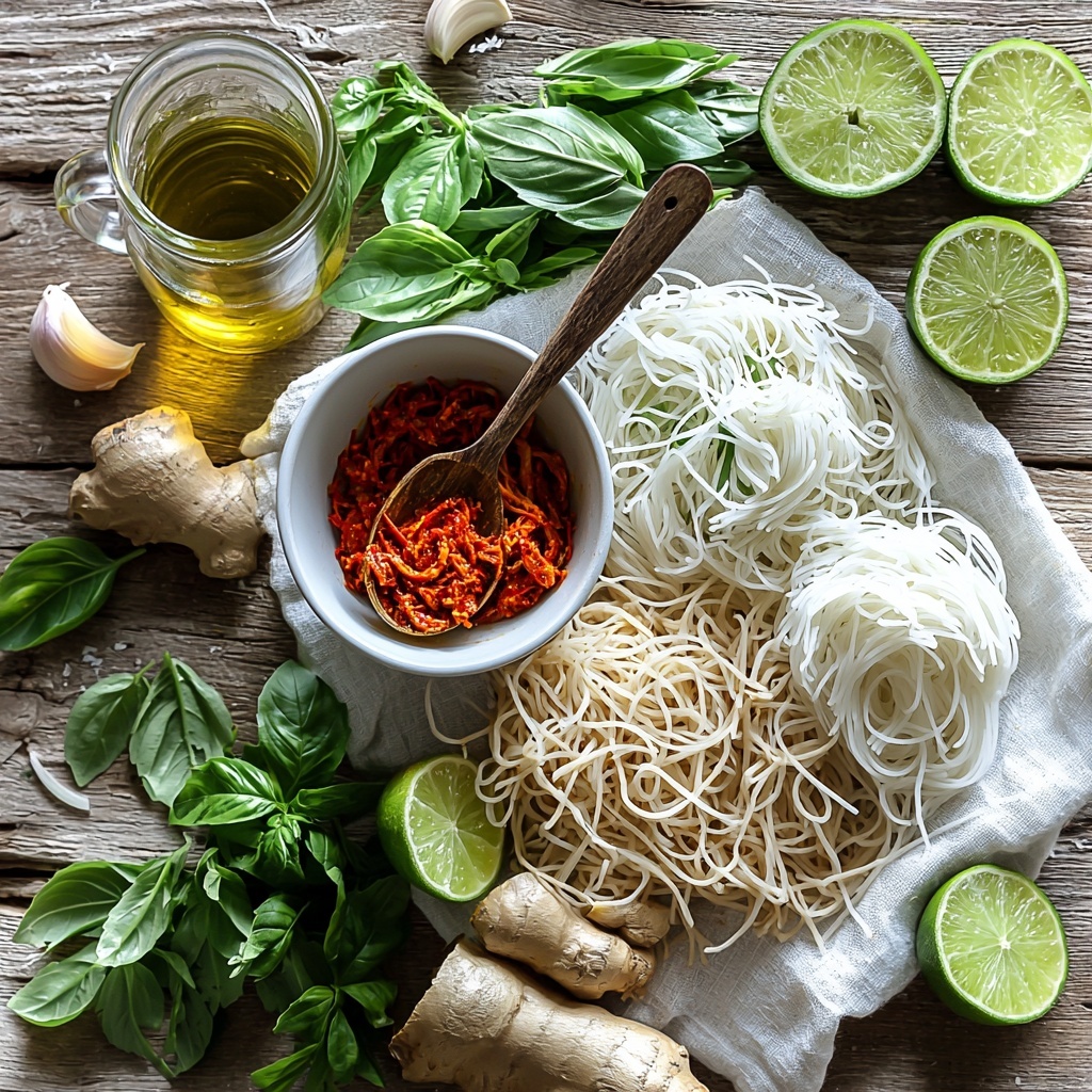 Pour in the chicken or vegetable broth, water, and the juice from one lime. Bring the mixture to a gentle boil, then stir in the rice noodles. The noodles will soften right in the simmering broth, absorbing those complex curry flavors.