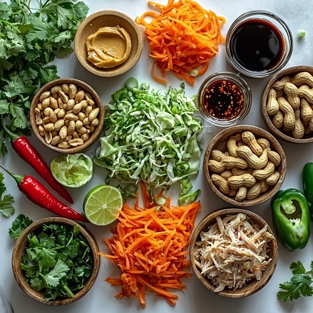 • 2 cups cooked chicken (shredded): Provides hearty protein and soaks up the peanut dressing beautifully.