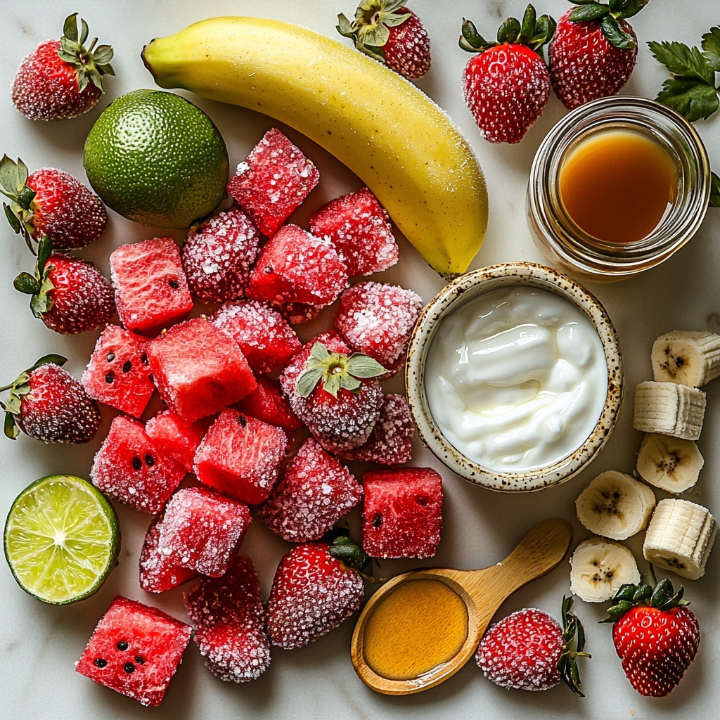 These ingredients are surprisingly simple but totally essential to crafting the Ultimate Watermelon Smoothie Recipe for a Fresh Summer Boost Recipe. Each one plays a crucial role: the watermelon offers juiciness and natural sweetness, strawberries add tangy depth, banana brings creamy texture, vegan yogurt balances flavor with smoothness, while lime juice gives a zesty punch.