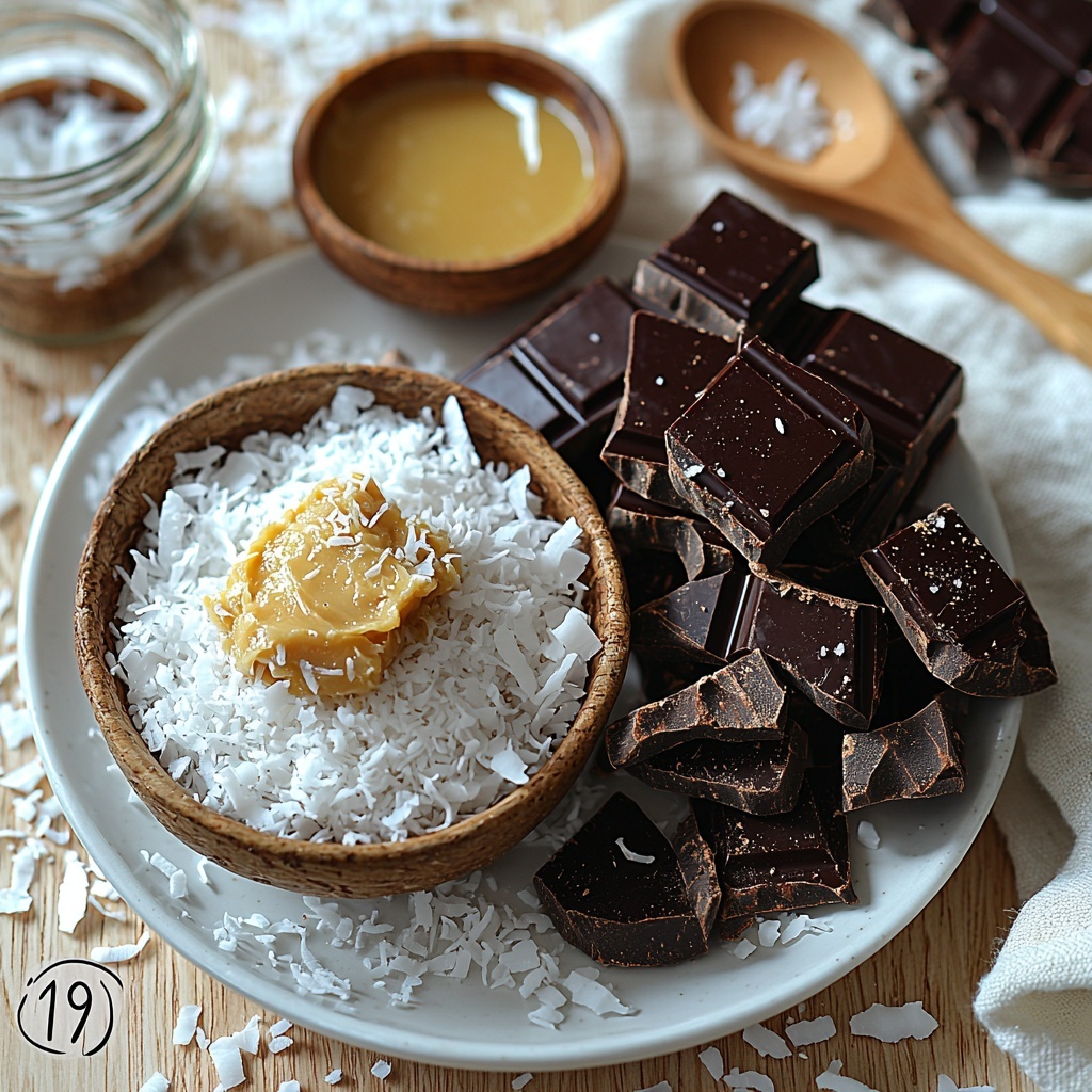 - 220 g vegan chocolate: The decadent coating that encases the coconut filling, delivering that classic chocolate-coconut combo.