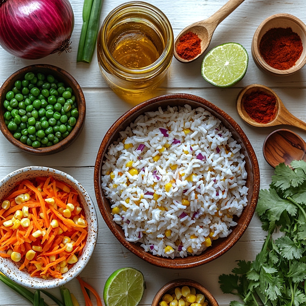 The magic of the Very Veggie Rice and Beans Recipe lies in its simple, straightforward ingredients. Each component plays a crucial role — from the sweet punch of Vidalia onion to the zesty lime juice that brightens the whole dish. These ingredients come together to create layers of flavor, color, and texture that make this recipe truly special.