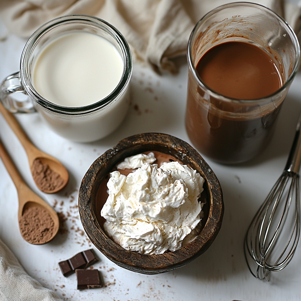 This Whipped Hot Chocolate Recipe keeps things refreshingly simple with just a few ingredients, each playing a key role to create layers of flavor and texture that feel downright decadent. From the dusting sweetness of the hot chocolate mix to the creamy richness of heavy cream, and the smooth warmth of chocolate milk, every ingredient is essential for that perfect harmony.
